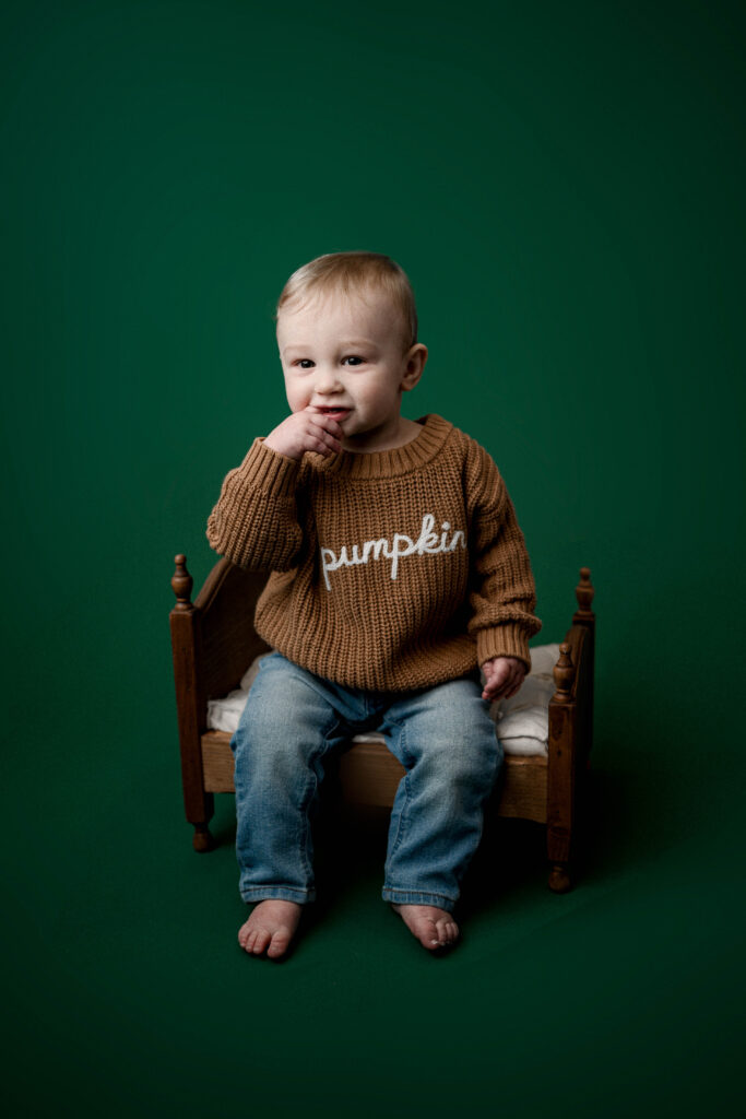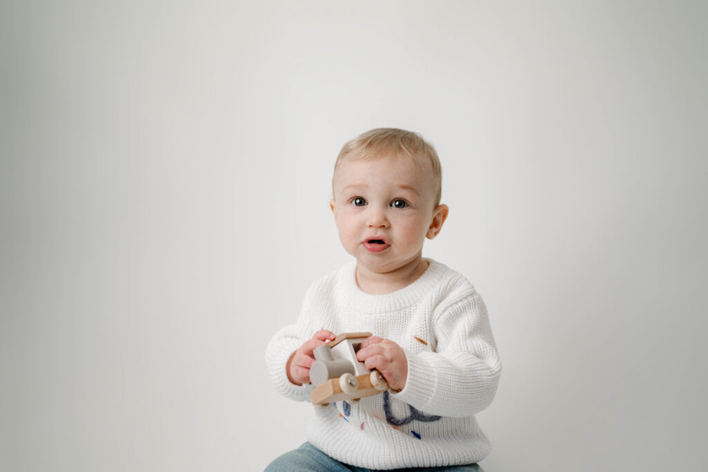 My Rio, WI studio is fully designed for babies and families — warm, cozy, and minimal so the focus stays on your child. Parents don’t need to bring anything; I have wardrobe, blankets, wooden toys, and everything needed for a cohesive gallery.
