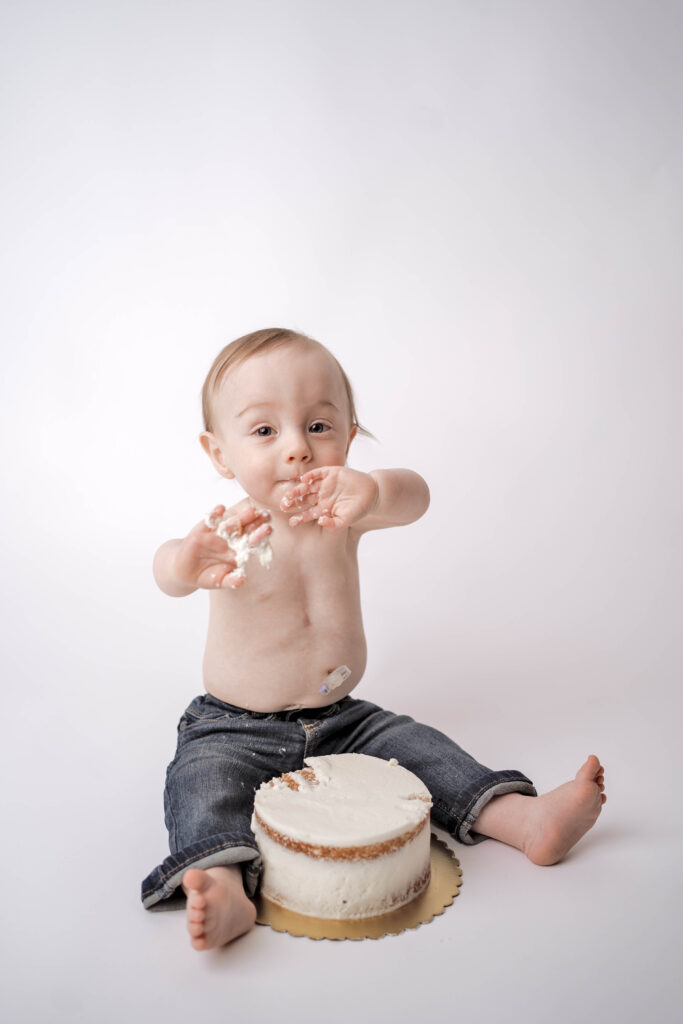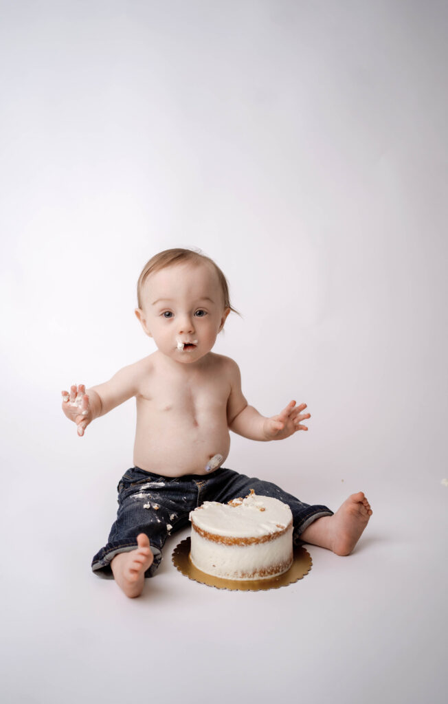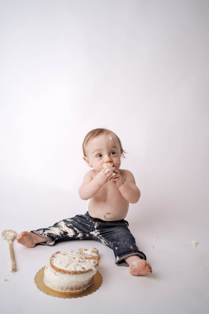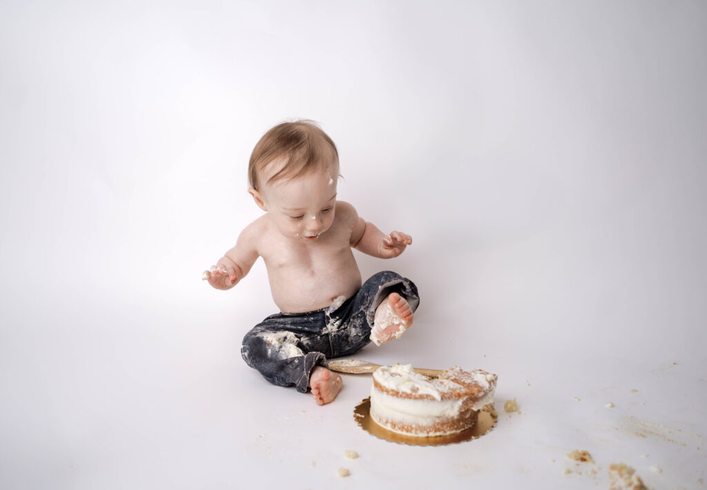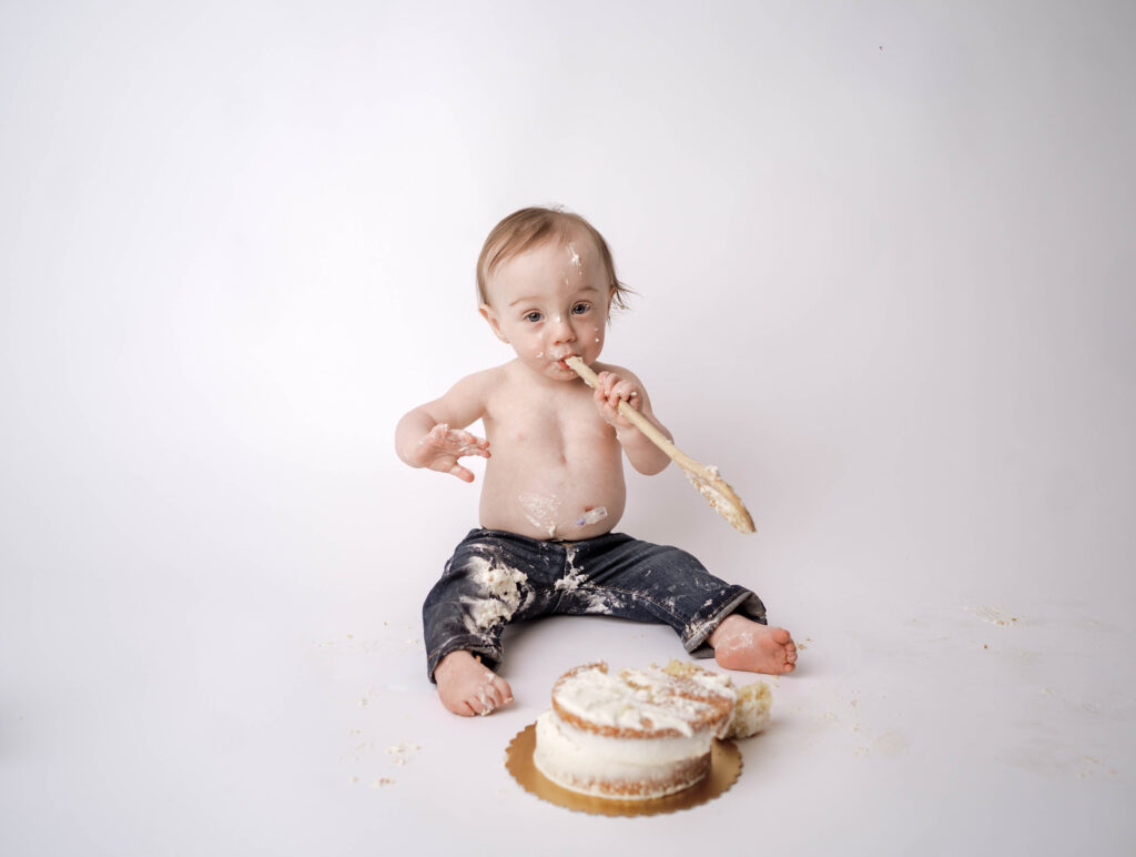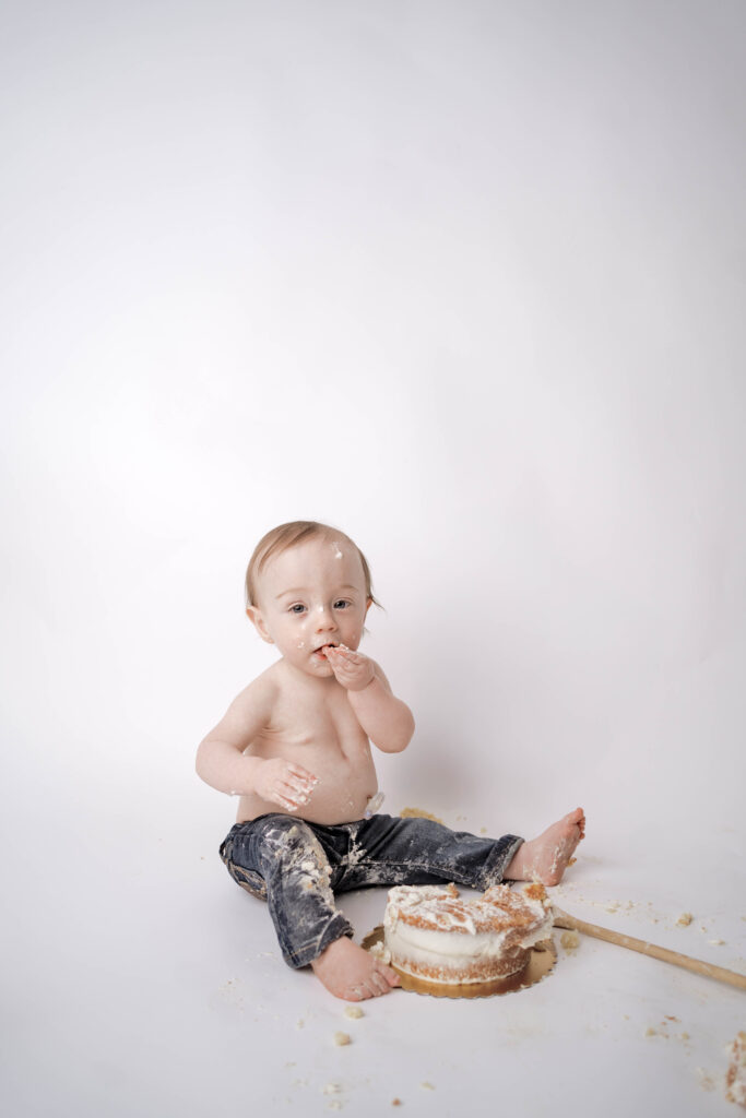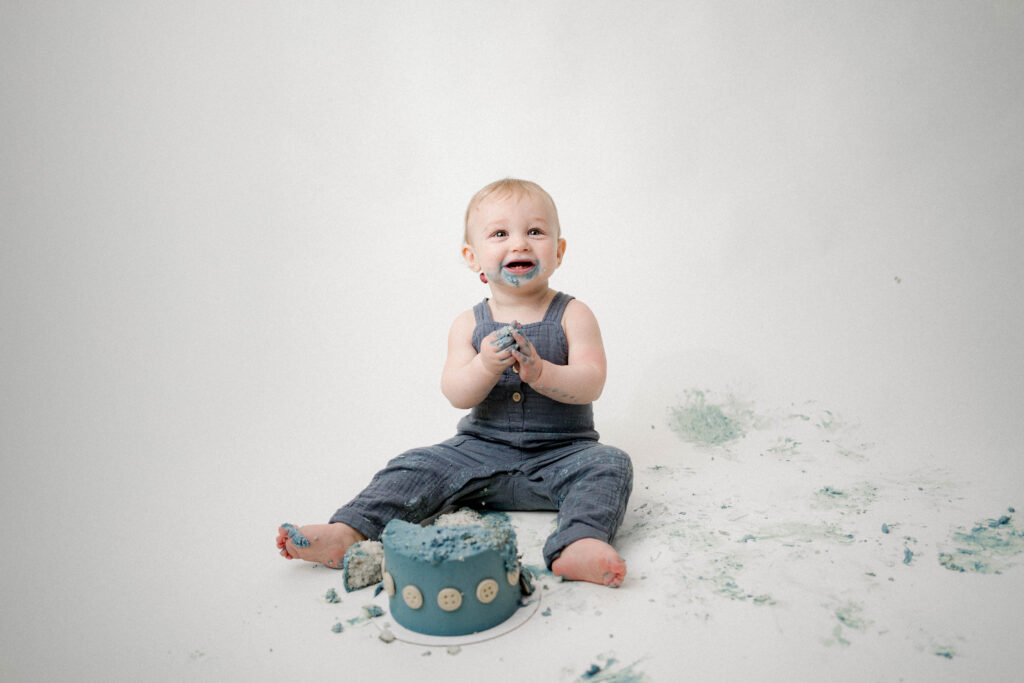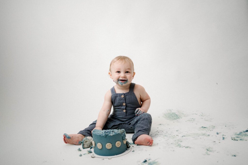• Minimal cake smash celebration in the studio