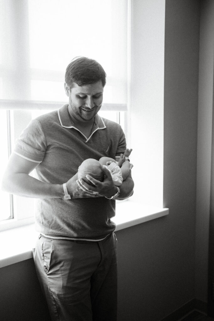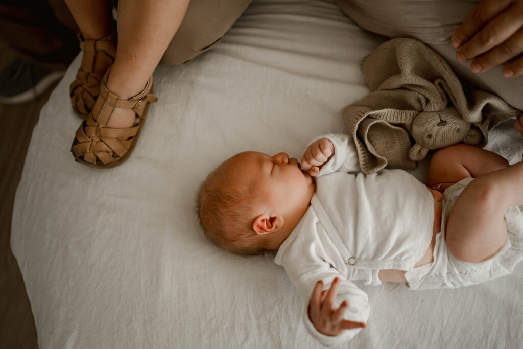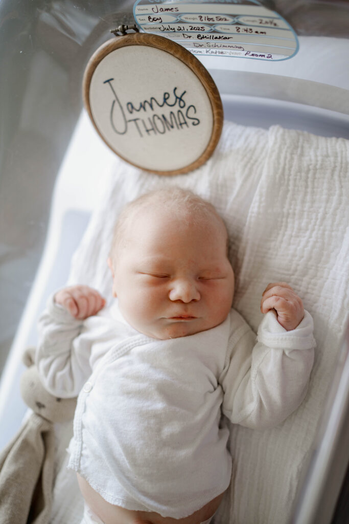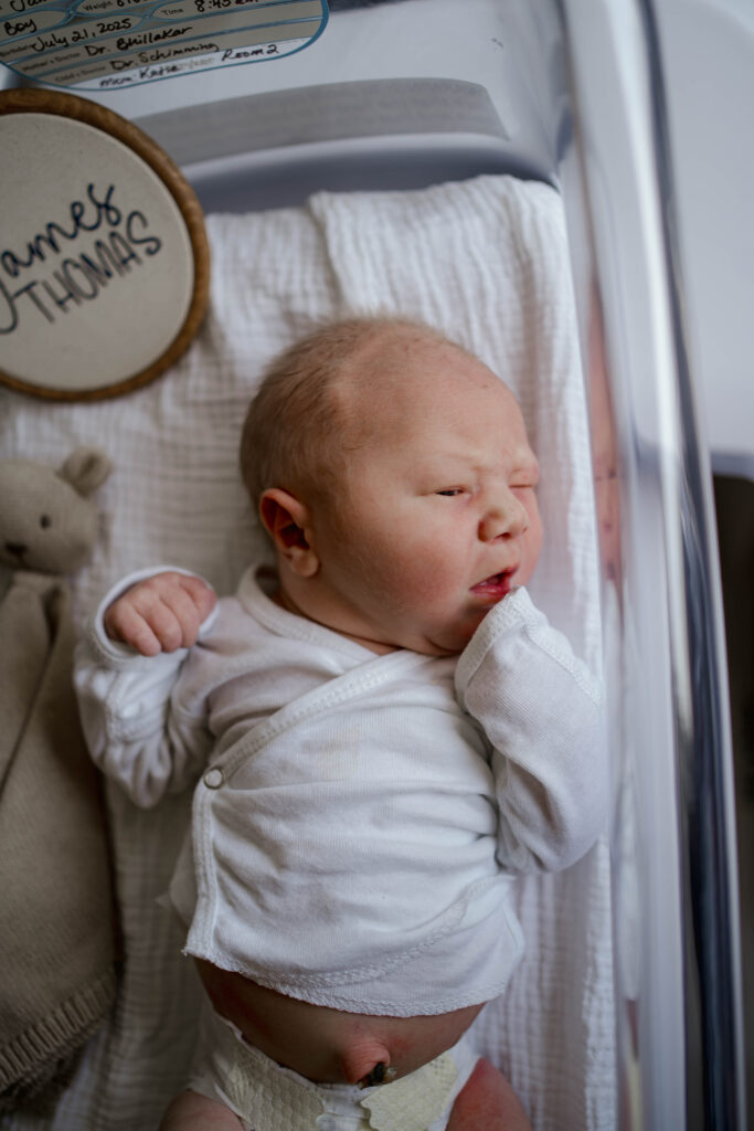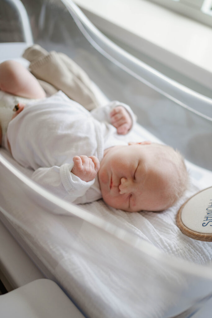 Bring one simple swaddle + one soft, neutral outfit. That’s it.